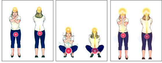 5. – Inhala por la nariz y baja lentamente poniéndote en una posición en cuclillas en el suelo y mirando al suelo, espalda récta.